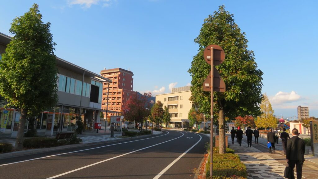 駅と市役所を結ぶ「ふれあい通り」は都市計画道路整備事業として新設されたもので、その敷地には当時勤めていた株式会社マルニ(現:マルニ木工)の本社と工場がありました。周囲には木を削る音がこだまし、おが屑や木の香りが漂うエリアでした。