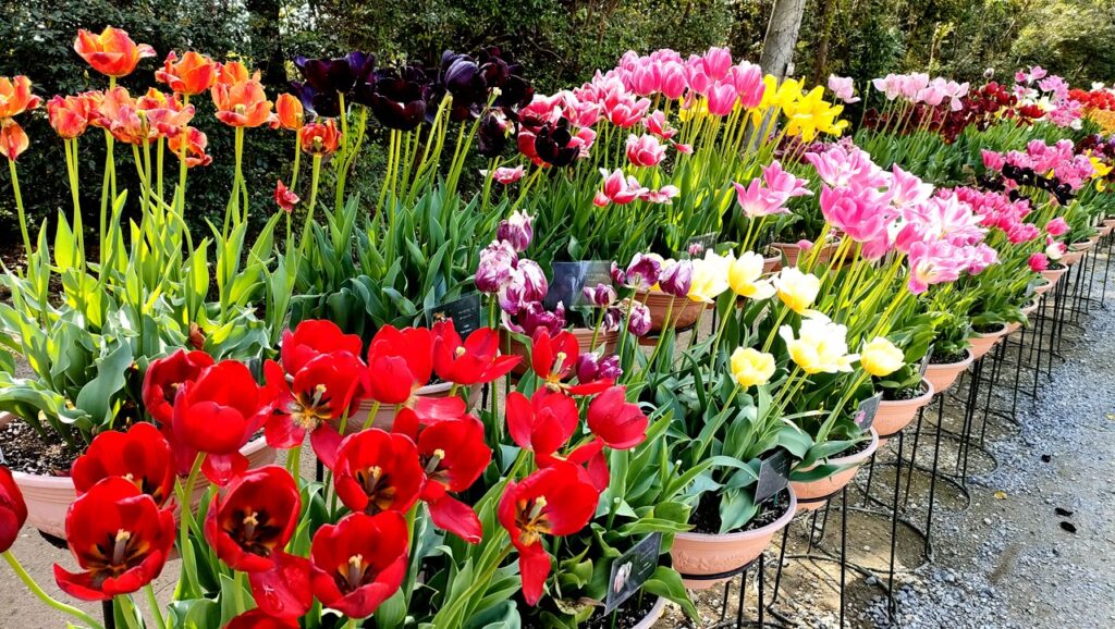 初めは加西市の兵庫県フラワーセンターへ。チューリップが有名とのことでしたがこの時期地植えの花はもう終わりかけていました。一方、鉢物は調整が効くのか見事な色彩で目を楽しませてくれました。